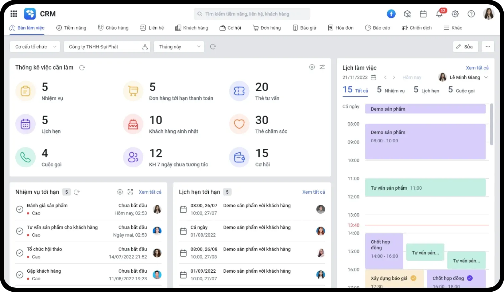 – Hỗ trợ doanh nghiệp theo dõi và tối ưu hóa quy trình bán hàng. – Cung cấp các báo cáo chi tiết về tình trạng chăm sóc khách hàng và hiệu quả bán hàng. |