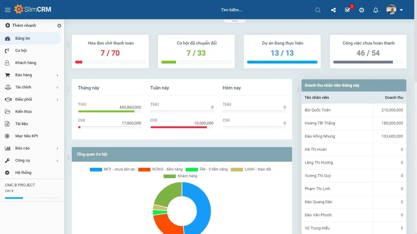 SlimCRM là phần mềm quản lý doanh nghiệp toàn diện, được thiết kế để tối ưu hóa bốn khía cạnh chính: quản lý khách hàng, nhân sự, tài chính và quy trình nội bộ. Được phát triển với giao diện hiện đại và dễ sử dụng, SlimCRM mang lại giải pháp tinh gọn nhưng hiệu quả, phù hợp với mọi đối tượng người dùng mà không cần tốn thời gian đào tạo. Một số tính năng nổi bật của phần mềm: