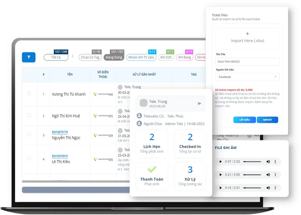 - Có file ghi âm mọi cuộc gọi và tạo, chỉnh sửa, quản lý thông tin thẻ điều trị của khách hàng