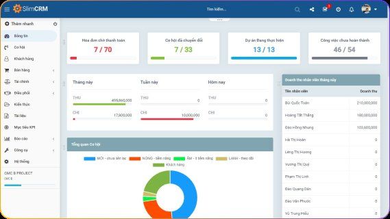 - SlimCRM hỗ trợ doanh nghiệp xây dựng và theo dõi quy trình bán hàng chuyên nghiệp, từ việc tạo cơ hội đến khi chốt đơn, giúp tăng tỷ lệ chuyển đổi khách hàng tiềm năng.