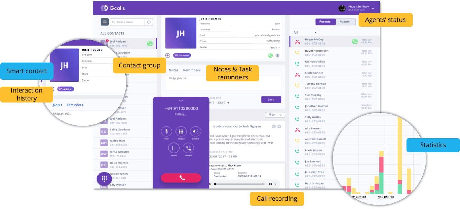 - Quản lý lịch sử cuộc gọi và khách hàng một cách chi tiết.